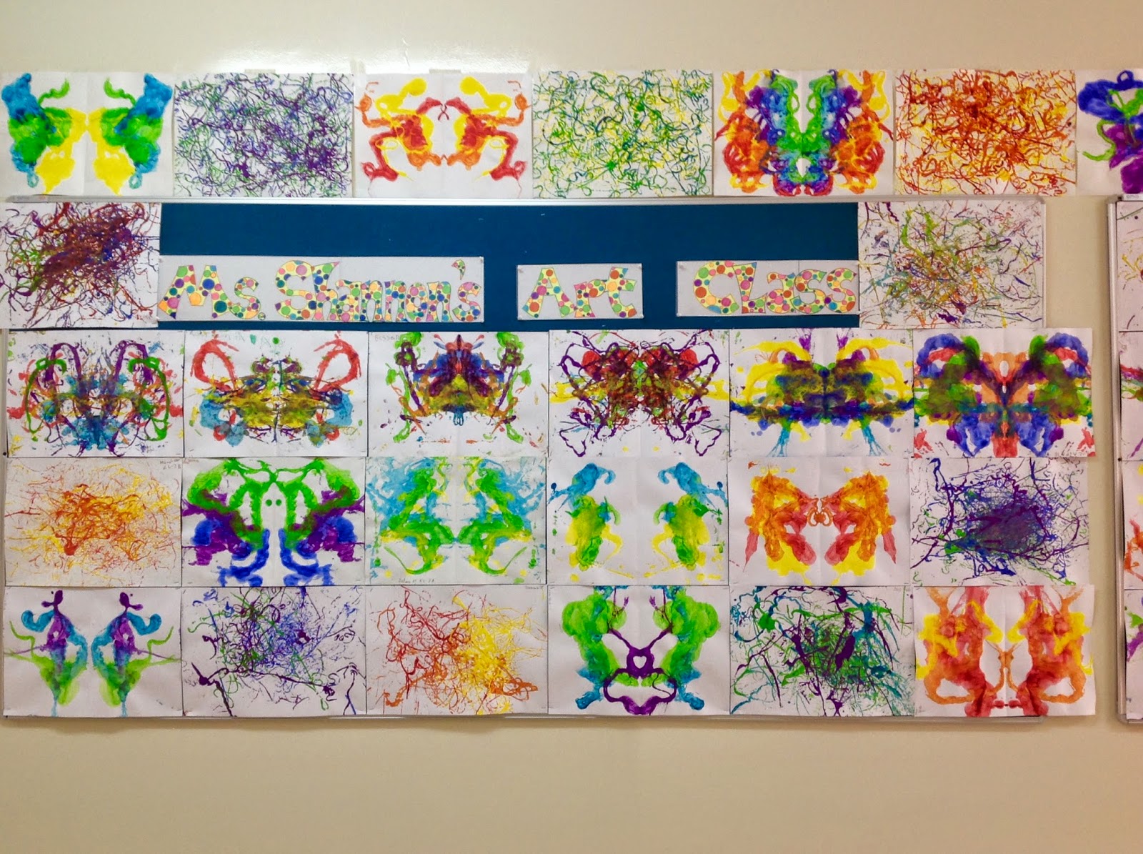 The spontaneous outcomes of the mirror image paintings allowed for the students to use their imagination and decide what 'creature/form' they created.